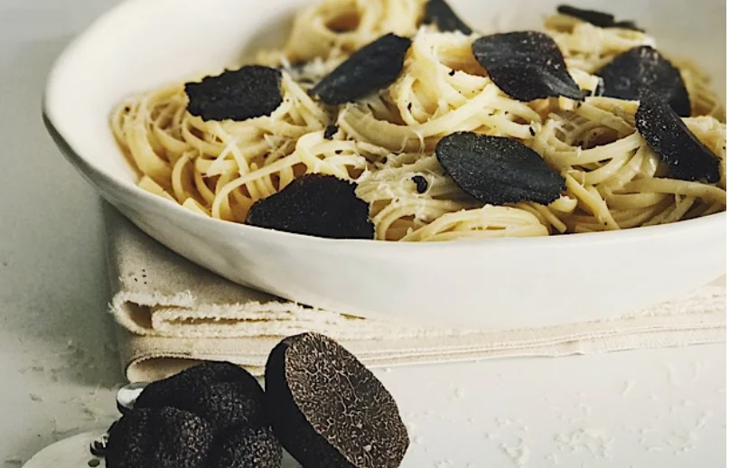 Ingredients 500 g Linguine, Di Martino boiling water Black truffle Salt of Profine Food Stores 1 Egg yolk 75 g butter, Demi Sel Freshly cracked black pepper Parmigiano Reggiano, Cravero…