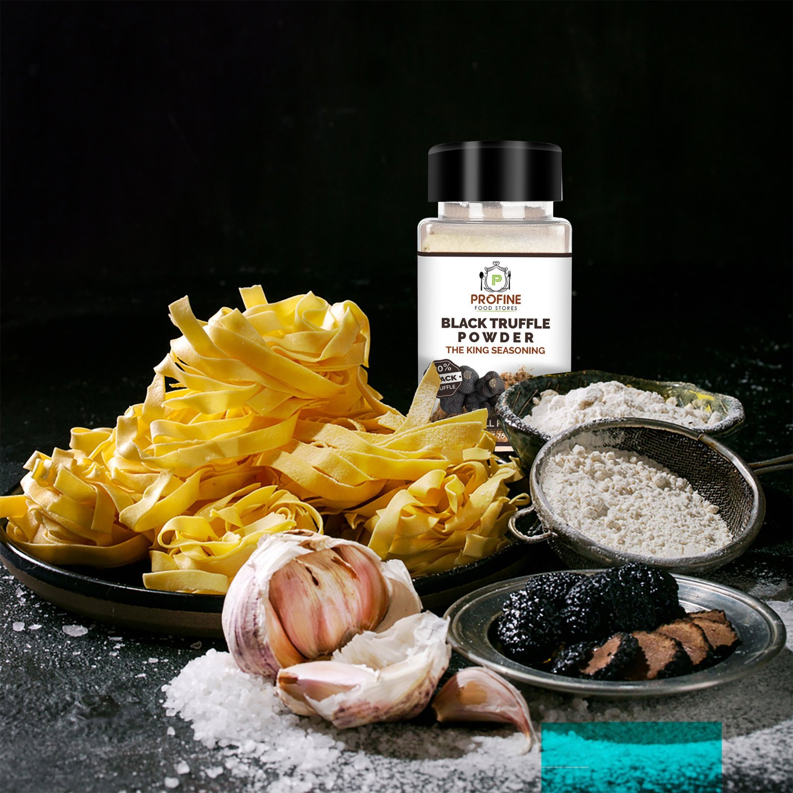 It comes with a Full Pack Including One PET Container  of Tuber black truffle Powder,  one PET Container of black truffle salt, and one PET Container  of