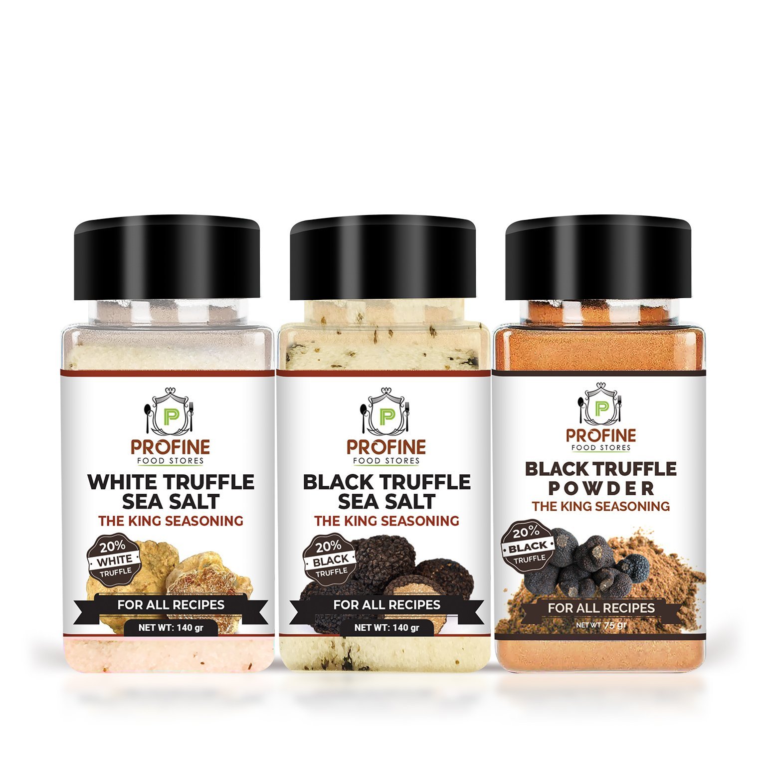 It comes with a Full Pack Including One PET Container  of Tuber black truffle Powder, one PET Container of black truffle salt, and one PET Container  of
