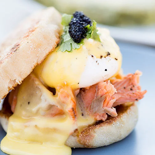 With a few easy tricks, you too can poach the most perfect eggs! Top them with salmon and a classic Hollandaise Black Truffle Oil Mix sauce for a luxurious version of the brunch classic. Any type of cooked salmon works for this recipe – broiled, poached, oven-baked – and you can even sub for smoked salmon in a pinch.